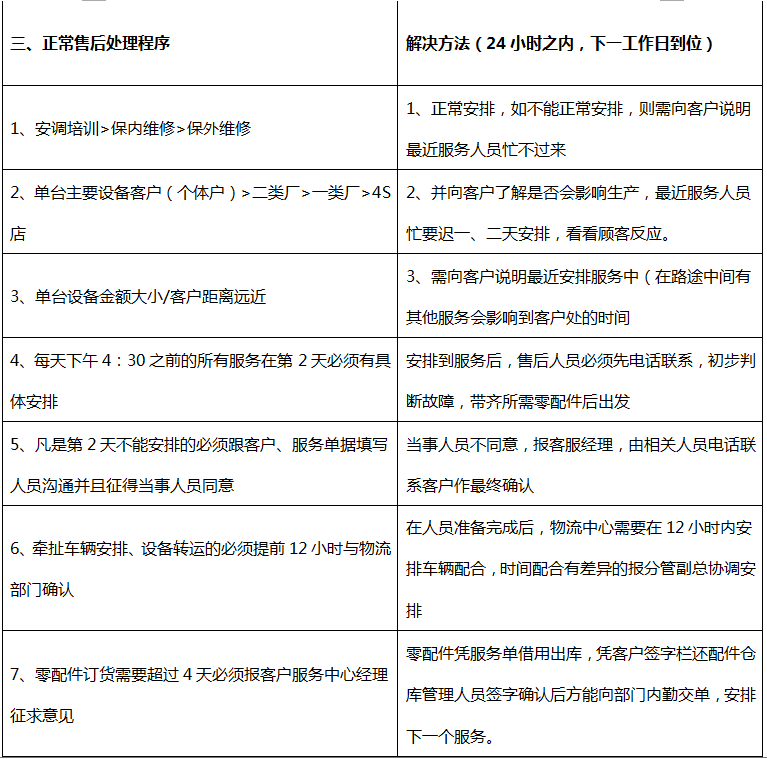 2.5售后服務(wù)執(zhí)行標(biāo)準(zhǔn)