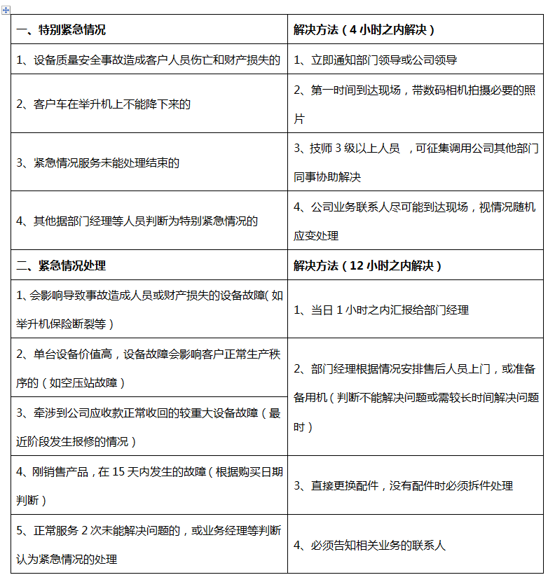 3、內(nèi)修人員應(yīng)在接到服務(wù)單后 24小時(shí)內(nèi) 給予解決(如果內(nèi)修也要派單問題就基本可以解決),等配件的內(nèi)修服務(wù)不允許超過5天。